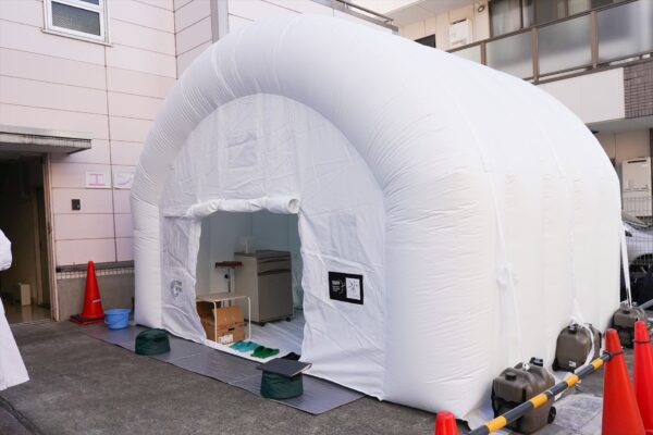テント材を使用することで様々な形状、仕様に対応出来た。今回高いクリーンレベルは必要無いとのことだったので、クリーン空気供給装置も安価で簡易的なもので対応した